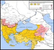 Par ailleurs, c'est au cours de ces années qu'Eusèbe semble avoir noué des contacts avec les peuples gothiques des rives de la mer Noire, et consacre Wulfila — rencontré à l'occasion d'une ambassade à Constantinople ou à Antioche — « évêque des Goths », probablement en 341[37]. Eusèbe meurt probablement au cours de l'hiver 341-342, vraisemblablement à Constantinople[6].