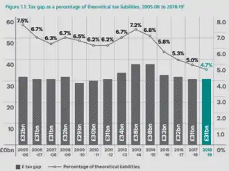 En 2012, le gouvernement britannique a investi 917 millions de £ contre l'évasion fiscale, espérant ainsi pouvoir retrouver 7 milliards de £ supplémentaires par an avant 2014/15. « Nous vous détecterons si vous n'avez pas déclaré de revenu de placement, si vous avez caché des actifs à l'étranger ou si vous ne réglez pas la TVA. S'il vous plaît, ne vous leurrez pas en pensant que le HMRC ne fera rien. Ce n'est qu'une question de temps avant que nous puissions vous rattraper », a expliqué la directrice du HMRC lors du lancement de cette campagne. « Et si vous connaissez quelqu'un qui ne paie pas ce qu'il devrait, contactez le HMRC. Il ne serait pas justes que vous payez ce que vous devez pendant que d'autres ne le font pas ».