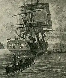 Dessin d'artiste du Columbia Rediviva sur le Columbia, 1919.