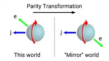Autrement dit, si deux mondes sont construits qui ne diffèrent que par parité : le monde « réel » et le monde « miroir », où la gauche et la droite sont inversées. Si une interaction est symétrique en parité, elle produit les mêmes résultats dans les deux « mondes »[1].