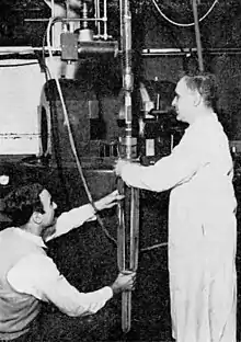 Le sel a été magnétisé le long de l'axe du facteur g élevé et la température a été réduite à 1,2 K en pompant l'hélium à basse pression. La coupure du champ magnétique horizontal a entraîné une baisse de la température jusqu'à environ 0,003 K. L'aimant horizontal a été ouvert, laissant la place à un solénoïde vertical pour être introduit et allumé pour aligner les noyaux de cobalt vers le haut ou vers le bas. Seule une augmentation négligeable de la température a été provoquée par le champ magnétique du solénoïde, puisque l’orientation du champ magnétique du solénoïde était dans la direction d’un faible facteur g. Cette méthode permettant d'obtenir une polarisation élevée des noyaux du cobalt-60 a été inventée par Gorter [13] et Rose[14].
