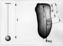 Le concept de pendule simple est une abstraction mathématique. En réalité, on utilise toujours un pendule composé. Ce dernier se compose d'un corps massique de forme géométrique en principe arbitraire, mais en fait soigneusement étudiée, oscillant autour d'un axe horizontal en un point fixe. La période d'oscillation d'un tel pendule est fournie par T = 2π√[I/(mgd)], où I est le moment d'inertie du corps de masse M par rapport à l'axe de balancement et d la distance de cet axe au barycentre. On définit la longueur synchrone l du pendule composé comme la longueur du pendule simple ayant la même période, soit l = I/(md) pour l > d.