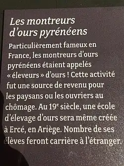 Elle présente de manière permanente un métier singulier et, en France, spécifique au Couserans, le montreur d'ours (oussaillé, orsailher ou oussailher en occitan).