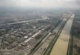 En aval, la zone portuaire est adaptée et améliorée[a 12],[a 16].