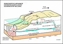- En 1999, des études sont reprises par le karstologue Éric Gilli, professeur à l'université Paris-VIII, qui avance la théorie d'une contamination marine profonde d'origine messinienne[10],[11],[12]. Il infirme l'hypothèse d'une origine continentale de la salinité[13]. Ces études confirment l'intérêt de cette ressource et montrent que ce fleuve souterrain draine une nappe qui pourrait s'étendre sur plusieurs centaines de kilomètres carrés. La nappe pourrait être largement utilisée par forage et offrir une alternative à l'utilisation de l'eau de surface. Cela relance les études qui sont conduites sous sa direction par Thomas Cavalera[14], dans le cadre d'une thèse cofinancée par l'État et le Groupe des Eaux de Marseille (SEM) et appuyée par le Conservatoire du littoral.