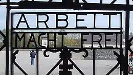 L'expression Arbeit macht frei (« Le travail rend libre ») était affichée à divers endroits dans les camps nazis. Le portail de Buchenwald porte la devise Jedem das Seine : « Chacun reçoit ce qu'il mérite ».