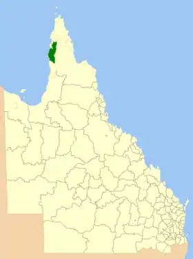 | Comté d'Aurukun | Aurukun | 1978 | 7 424 | 1 350 | 1 382 | ![]() |