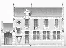 - I-II. Hôtels de ville, mairies, maisons d'école, salles d'asile, presbytères, halles et marchés, abattoirs, lavoirs, fontaines, etc. III. Architecture scolaire : écoles de hameaux, écoles mixtes, écoles de filles, écoles de garçons, groupes scolaires, salles d'asiles, écoles professionnelles, écoles normales primaires[3],[4],[5].
