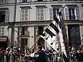 Au cours du défilé qui a lieu l'après-midi à travers la ville, des organisations de natures très diverses défilent, chacun arborant son costume de cérémonie : par exemple, parmi le groupe des universitaires, « les historiens défilent en toge jaune, les juristes en toge rouge »[18].