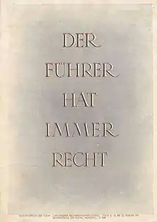 Le Führerprinzip (« principe du chef ») est le socle juridique et principe essentiel du régime nazi, qui consiste en la soumission aux ordres du Führer, dont les mots ont valeur de loi. Il est appuyé par une organisation hiérarchique.