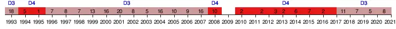 | 2014 | 6e | 39 | 26 | 11 | 6 | 9 | 34 | 30 | +4 | — | |