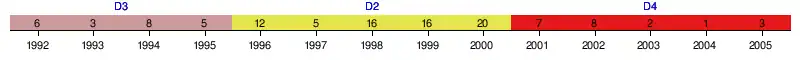 | 2003 | 2e | 41 | 18 | 13 | 2 | 3 | 37 | 12 | +25 | — | |
