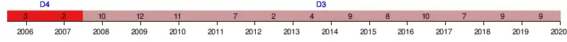 | 2008 | 3e Ouest | 10e | 47 | 36 | 11 | 14 | 12 | 32 | 33 | -1 | |