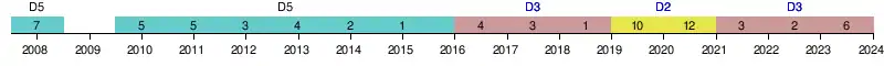 | 2012 | 3e | 34 | 14 | 8 | 4 | 2 | 36 | 9 | +27 | ||