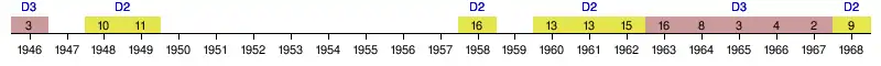 | 1948 | 2e Sud | 10e | 3 | 18 | 1 | 1 | 16 | 10 | 72 | -62 | |