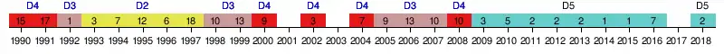 | 2015[13] | 2e | 19 | 10 | 6 | 1 | 3 | 20 | 15 | +5 | ||