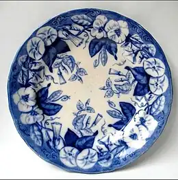 ![]() Assiette à décor "Volubilis", vers 1850. Ce modèle fut largement inspiré de la série à succès "Flora" de Creil-Montereau. |