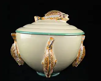 D'autres artistes participent à ce renouveau de la faïence quimpéroise : Jean Lachaud, Berthe Savigny, Marius Giot, François Bazin, Charles Maillard, Louis-Henri Nicot, René-Yves Creston et Jeanne Malivel[Note 12], Georges Géo-Fourrier, Robert Micheau-Vernez…