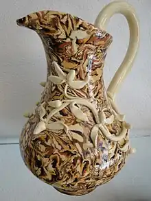 La faïence du pays d'Apt s'est développée à partir du XVIIIe siècle dans le pays d'Apt. Sa production est liée à l'abondance de ses argiles et terres d'ocre. Leur utilisation, dès l'Antiquité, permit de développer une production de tuiles, briques et carreaux qui perdure encore de nos jours. La réputation de la faïence du pays d'Apt est due à la technique des terres de couleur mêlées ou jaspées qui composent un dessin dans toute l'épaisseur de la pâte. À cela s'ajoute un style baroque, où les aiguières, écuelles et pots à tabac sont rehaussés de décors monochromes de feuillages, de fruits et de petites figurines d’inspiration Louis XVI.