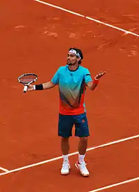 En France, il bat au second tour de Roland-Garros le Serbe Viktor Troicki après un match en cinq sets joué sur deux jours à cause de la pluie durant lequel il a sauvé deux balles de match[14], puis il s'incline au tour suivant face à Jo-Wilfried Tsonga au terme d'un match assez étrange (l'Italien menant au score en « bluffant » le Français et perdant finalement chaque set). Tsonga affirme après le match que :