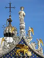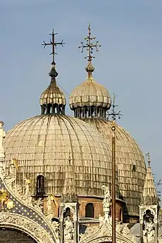 - Dans l'histoire, cette stèle funéraire juive était déjà gravée de caractères nabathéens, datant de l'an 300 après Jésus Christ. Elle fut utilisée plus tard par les Arabes. Il s’agit en fait d'un siège en marbre construit à partir d'une ancienne stèle funéraire islamique, portant des sculptures ornementales en kufi des versets du Coran. Il fut donné au doge Pietro Tradonico par l'empereur d'Orient Michel III dit « l'ivrogne », au IXe siècle.