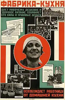 L'écrivain Iouri Olecha décrit ce processus comme suit dans son roman Zavist[1] : « La guerre est déclarée à la cuisine. Mille cuisines peuvent être considérées comme conquises. Tous les hachoirs à viande, les primus, les poêles, les robinets y seront réunis. Si vous voulez, ce sera l'industrialisation des cuisines. Des commissions vont être créées. Les machines à éplucher les légumes s'avèrent excellentes. Un ingénieur allemand construit une cuisine… »