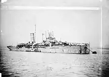 Le HMS Campania[3] fut mis en service en avril 1915, après avoir été équipé d'un pont d'envol de 120 pieds (36,58 m) situé au-dessus du gaillard avant et d'une capacité d'emport de 10 appareils.