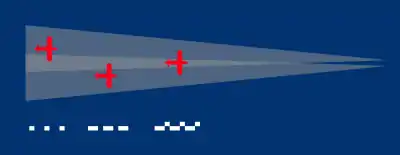 L'antenne du centre est alimentée en permanence alors que les deux autres sont alimentées alternativement. Avec deux antennes alimentées seulement, la présence de la troisième déforme le lobe et lui donne une forme de « rein » centré sur l'une des antennes latérales. Lorsque c'est l'antenne de gauche qui est commutée elle envoie une série de « points » de ¹/8e de seconde répétés toutes les secondes. Lorsque l'antenne de gauche est coupée et que c'est celle de droite qui est en service, elle envoie une série de « traits » de ⁷/8e de seconde. Le signal peut être reçu à une distance de 30 km de la piste.