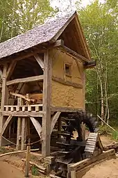 Reconstitution d'un moulin à eau médiéval, Château de Guédelon, Yonne, à partir de la fouille des moulins de Thervay.