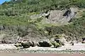 Cette zone est remarquable sur le plan géologique. Les marnes de l'Oxfordien, sous l'action du ruissellement des eaux de l'aquifère qui les surmonte, sont entaillées de profonds ravins. Ceux-ci sont parcourus de coulées boueuses qui avancent lentement vers la mer et contiennent des blocs de craie crétacée venus du sommet. À marée haute, les vagues attaquent le front des coulées, dégageant des fossiles extrêmement variés[4].
