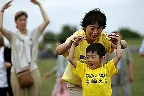 Le Falun Gong (chinois simplifié : 法轮功 ; chinois traditionnel : 法輪功 ; litt. « pratique de la roue de la loi »[1]), dont le nom officiel est Falun Dafa (法轮大法 / 法輪大法, grande loi de la roue de la loi[2]), est un mouvement spirituel inspiré du qigong, créé par Li Hongzhi. Son enseignement combine la pratique de la méditation, avec des exercices aux mouvements lents et souples, ainsi que le travail sur soi à travers ce qu'il appelle les trois principes fondamentaux : l'authenticité, la bonté et la tolérance. En dépit du fait que les universitaires occidentaux le considèrent comme un nouveau mouvement religieux (NRM), les adeptes refusent catégoriquement cette classification[3],[4].