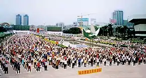 La pratique de Falun Gong à très grande échelle était une scène quotidienne en Chine avant la persécution lancée en 1999, comme ici à Canton (Guangzhou).
