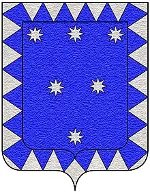 Blasonnement de la famille Altieri : « De 6 étoiles argent bleu disposées points à 8, 3, 1: 2 enclavées en chaîne de bleu et argent »