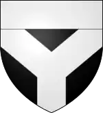 | Blasonnement | De sable au pairle d'argent, au chef du même. |