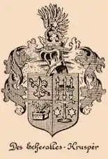 - La branche hongroise, issue de Charles des Écherolles, qui épousa Madame Krusper, descendante d'une vieille famille de la noblesse hongroise. Il obtint de faire accoler le nom de sa femme au sien, prenant pour nom des Écherolles Kruspér[57]. Aujourd'hui, la famille hongroise des Écherolles Kruspér réside en Hongrie ; les châteaux familiaux sont en Roumanie[58] (l'Autriche-Hongrie a été amputée d'une partie de son territoire lors du Traité de Versailles). Ils ont tout perdu sous l'ère communiste.