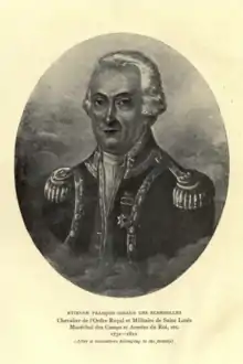 Il fut commandant du bataillon du régiment de royal[20], et finit sa carrière avec le grade de maréchal de camp.