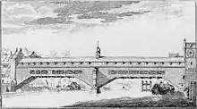 - Le pont sur le Rhin à Schaffhouse franchissant le fleuve en deux travées de 52 et 59 mètres de portée, par Hans Ulrich, en 1757 ;