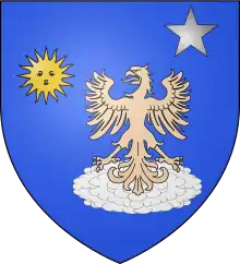 Armes : D'azur à un aigle de carnation sur un nuage fixant un soleil d'or, un étoile d'argent en chef.