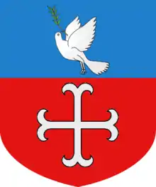 - le 1er chargé d'une colombe d'argent portant en son bec un rameau d'olive ;