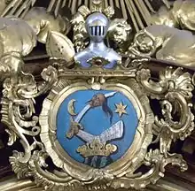 | Blasonnement | D'azur, au dextrochère d'argent armé d'un sabre de même enfilant une tête de Turc, soutenu d'une couronne, accompagné en chef à dextre d'une étoile d'or à six rais et en chef senestre d'un croissant tourné Cimier : Au dextrochère d'argent armé d'un sabre de même enfilant une tête de Turc |