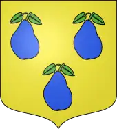 La seconde branche de cette famille obtint le , concession du titre de baron transmissible par ordre de primogéniture masculine, et porte les armoiries suivantes : d'or à trois poires d'azur, deux, un, feuillées et tigées de sinople, l'écu sommé d'un heaume d'acier, fourré d'azur, grillé, colleté et liseré d'or, aux bourrelets et hachements d'or et d'azur.