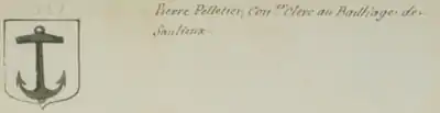 Les armes enregistrées dans l'Armorial général de 1696 par Pierre Pelletier, Conseiller clerc au Bailliage de Saulieux (sic) et son frère (Jacques-)Léger Pelletier, sieur de Chambure, Contrôleur au Grenier à sel de Saulieux (sic), sont : "D'argent à une ancre de sable."[10]