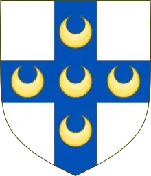 D'argent, à la croix d'azur, chargée de cinq croissants d'or