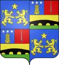 "Ecartelé, aux 1 et 4 d’azur à deux lions affrontés d’or soutenant une étoile de même (qui est d’Allemagne en Provence) ; aux 2 et 3, mi-parti coupé au 1 d'azur à la tour d'or maçonnée, ajourée et ouverte de sable, surmontée de trois étoiles d'argent rangées en fasce ; au 2 de gueules à l'épée haute d'argent ; au 3 d'or à un pont de sable de quatre arches soutenu d'une rivière de sinople en champagne (qui est des barons de l'Empire)".[5],[7] . La branche de Provence a été anoblie par charge de Secrétaire du Roi en 1712, celle du Bugey titrée en 1813 baron de l'Empire. |