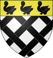 | Blasonnement | Fretté d'argent et de sable au chef d'or chargé de trois merlettes de sable |