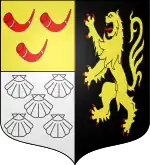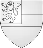 d’argent, au lion de sable lampassé, armé & couronné d’or, au franc-quartier de même à trois huchets de gueules[réf. nécessaire][6].