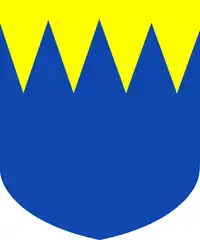 • Armes : D'azur, au chef émanché d'or de quatre pointes