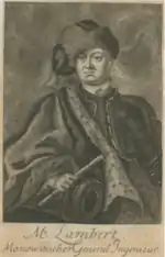 III) Joseph-Gaspard Lambert de Guérin, né à Grenoble en 1655, ingénieur ordinaire du roi Louis XIV à Paris et à Arles[1],[32],[33], et ingénieur général russe.