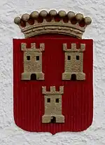 - puis « De gueules à trois tours d'or, ajourées et maçonnées de sable, 2 et 1 »[15]