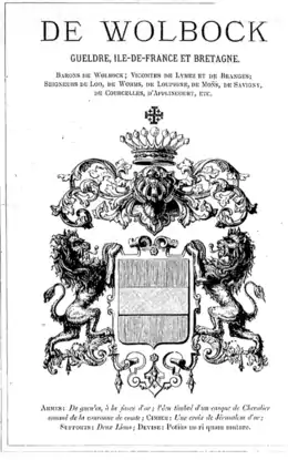 La famille de Wolbock fut maintenue noble en 1609 par arrêt de la Cour des Aides de Soissons [Laquelle ?] et le par M. Dorieu, intendant de Soissons[1],[6].